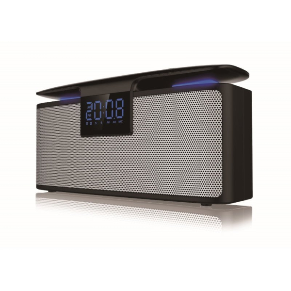 Akai ABTS-M10 stylový přenosný reproduktor se skvělým HiFi zvukem a nastavitelným náladovým osvětlením, duální budík, Bluetooth 4.2, USB, čtečka SD, Aux-in, FM rádio