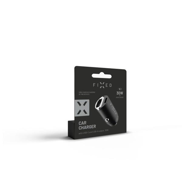 Autonabíječka FIXED s USB-C a USB-A výstupem v miniaturním provedení, podpora PD a QC 3.0, 30W, černá
