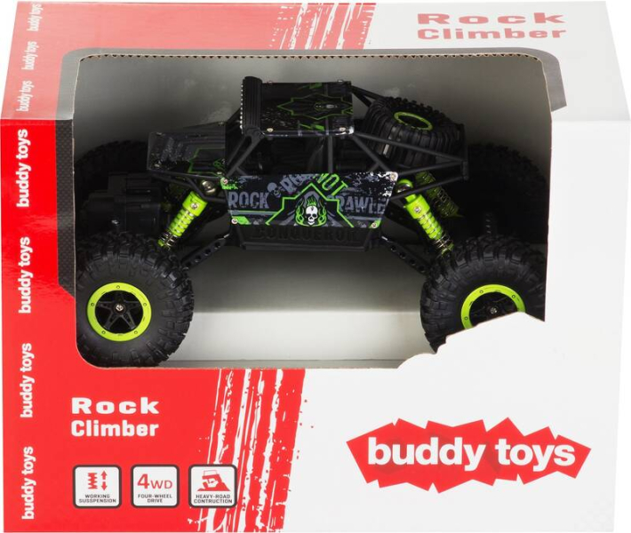 Nebaví vás jezdit jenom po obýváku s běžným autíčkem na dálkové ovládání? Pořiďte si RC model a vyrazte do terénu! RC model Buddy Toys Rock Climber 18.612 je autíčko na dálkové ovládání v měřítku 1:18, které má pohon na všechna čtyři kola a kloubové odpružení. S autíčkem Buddy Toys Rock Climber se můžete vydat i do těžšího terénu, kde jsou kameny, štěrk, kořeny či prach. Buddy Toys Rock Climber 18.612 to všechno zvládne a navíc ho můžete pustit i dál od sebe. Ovládá se totiž pomocí pistolového ovladače, který má dosah až 50 metrů.