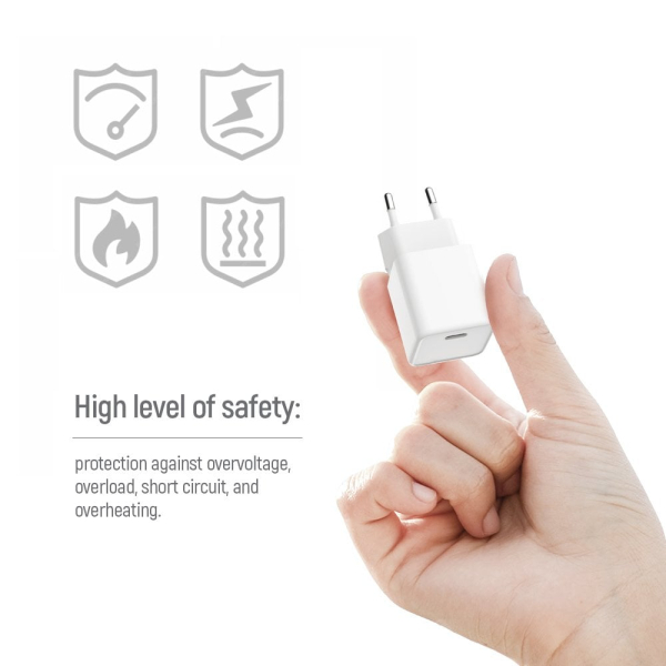 Napájecí adaptér, síťová nabíječka, 1× USB-C, výstup max. 3A, Power Delivery 3.0, 20W, vstup 100–240V, GaN technologie, bílý