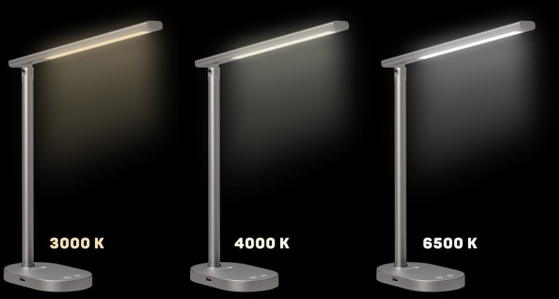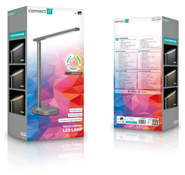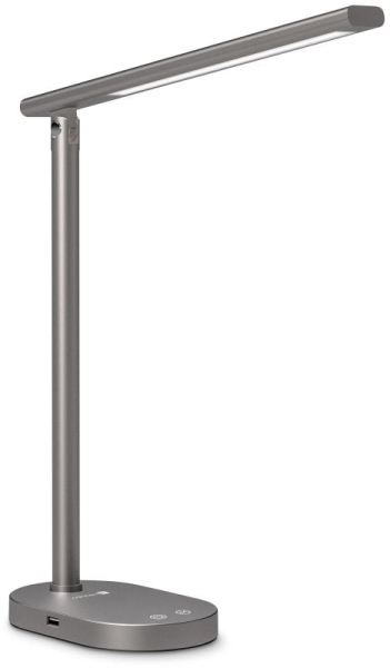 Díky sklopnému rameni nastavíte dokonalý úhel pro jakoukoliv práci. Lampička disponuje USB-A výstupem s výkonem 5 W a dvěma praktickými dotykovými spínači, které umožňují zapnout/vypnout lampu, nastavit 3 úrovně jasu světla nebo nastavit barevnou teplotu světla ve 3 různých úrovních (3000/4000/6500 K).