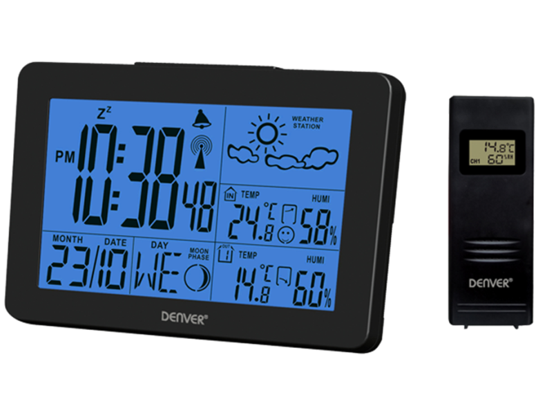 Praktická meteorologická stanice Denver WS-530 v černém provedení s bezdrátovým čidlem nabízí několik užitečných funkcí, které ocení každý, kdo chce být informován o aktuálním počasí, teplotě či vlhkosti. S funkcí budíku se nemusíte obávat, že ráno zaspíte do práce.