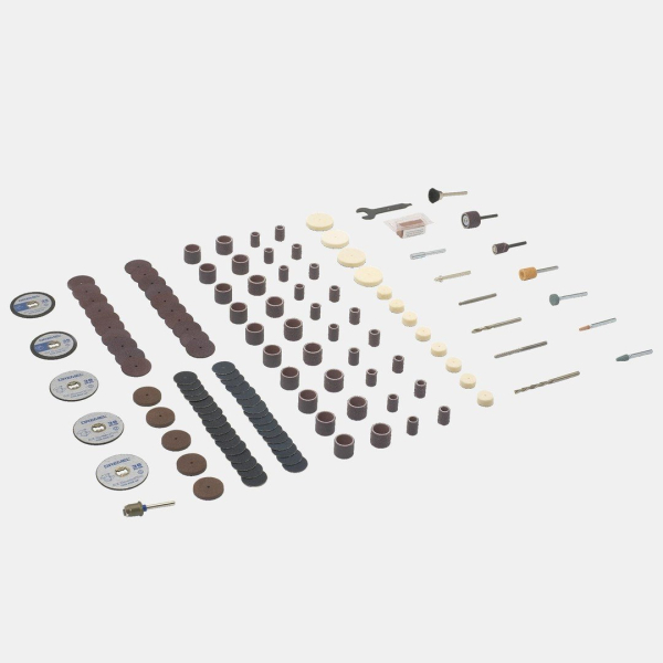 Kompletní sada: Balení obsahuje úctyhodných 128 kusů příslušenství a 6 nástavců, což vám dává absolutní volnost a přesnost při práci.