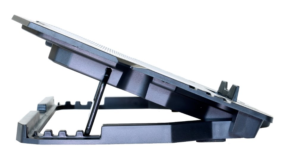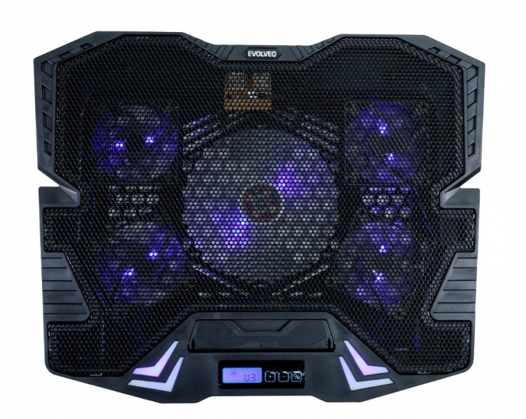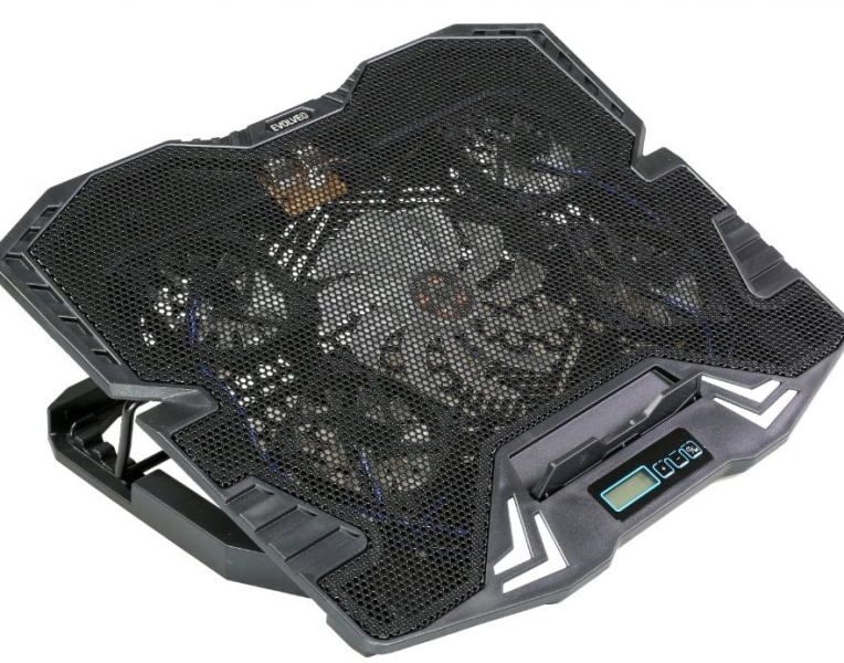 Herní polohovatelný chladící podstavec pro notebooky velikosti 11- 15.6". Regulace rychlosti otáček ventilátoru, displej s ukazatelem rychlosti ventilátorů.