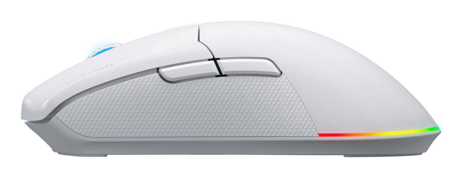 Lehká herní myš (68 g) • Symetrický tvar • 3 typy připojení: 2,4 GHz, Bluetooth 5.1, USB-C • Senzor PixArt PMW3311 (až 12 000 DPI, 1000 Hz) • Optické spínače s životností 100 mil. kliknutí • Až 100 hod. výdrž baterie (600 mAh) • RGB osvětlení