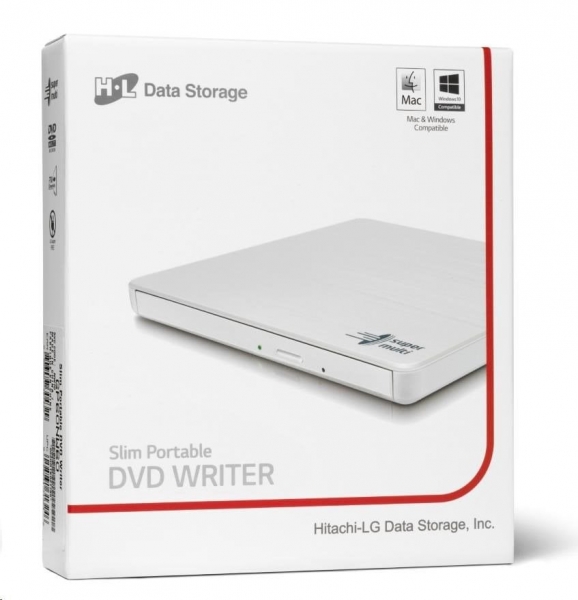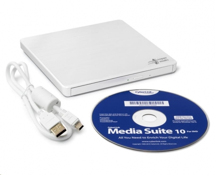 mechanika CD/DVD, externí, USB 2.0, přenosná, zápis DVD 8x, slim 14mm, podpora M-DISC, bílá