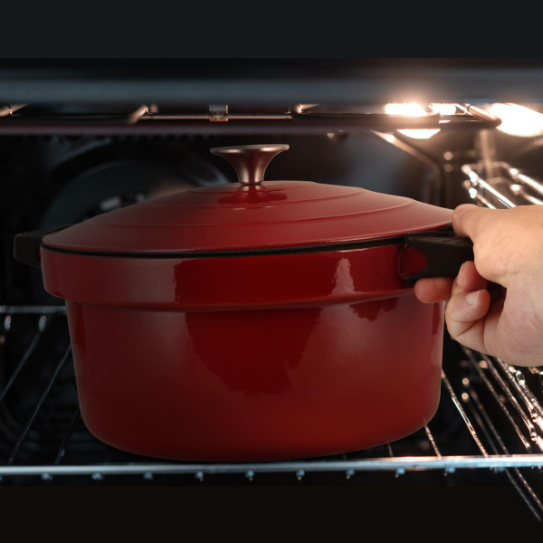 Víceúčelový Lauben OvenSafe® Multicooker 6000RS rozhodně nedělá ostudu svému označení. Vnitřní hrnec je poctivý litinový se smaltovaným povrchem – jako od babičky! Díky technologii OvenSafe® lze bez obav vložit do trouby či postavit na různé typy sporáků, zvládá teplotu až 250°C.