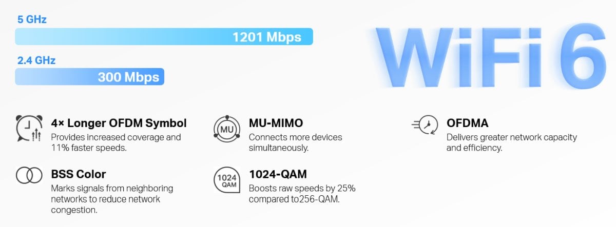 Halo H60X(2-pack)AX1500 Whole Home Mesh Wi-Fi 6 System2-pack: 1× Halo H60XR + 1× Halo H60XSSPEED: 300 Mbps at 2.4 GHz + 1201 Mbps at 5 GHzSPEC: Halo H60XR: Internal Antennas, 3× Gigabit Ports (WAN/LAN auto-sensing), 1024-QAM, OFDMAHalo H60XS: Internal Antennas, 2× Gigabit LAN Ports, 1024-QAM, OFDMAFEATURE: MERCUSYS APP, Router/AP Mode, One Unified Network, Seamless Roaming, Easy Expansion, Parental Controls, QoS, IPTV, IPv6, MU-MIMO, Beamforming, Smart Connect, TR-069, WPA3, BSS Color, TWT, ISP Preset (Agile Config), Aginet ACS