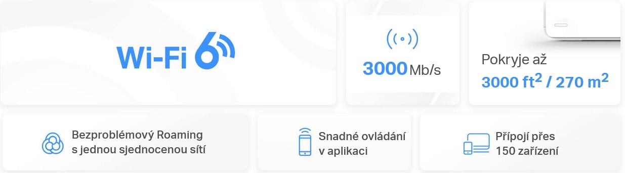 V balení naleznete 1 jednotku s Dual-Band Wi-Fi AX3000 (574 + 2402 Mbps) MU-MIMO s integrovanými anténami a třemi ethernetovými porty 10/100/1000 Mbps. Jednotky podporují MU-MIMO, 802.11r/k/v, OFDMA, Beamforming, pokryjete plochu až 270 m2. Pokud potřebujete rozšířit pokrytí, stačí jednoduše dokoupit další jednotky. Jednotky Halo podporují IPv6. Vhodným doplňkem do moderní domácnosti je také oddělená síť pro hosty nebo rodičovská kontrola.