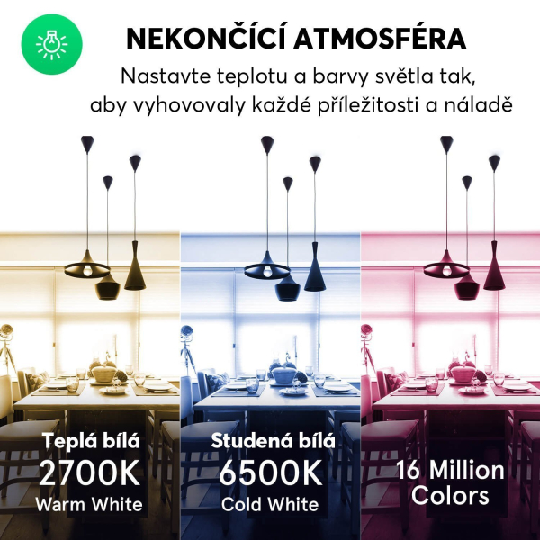 NOUS P4 WiFi má možnost nastavit barevnou teplotu osvětlení v rozmezí 2700 - 6500K, která vám umožní vytvořit jedinečnou atmosféru pro práci, odpočinek, večírek nebo i pro spánek. Den tak můžete začít jasným tonizujícím světlem a v noci odpočívat při zlatavém teplém osvětlení.