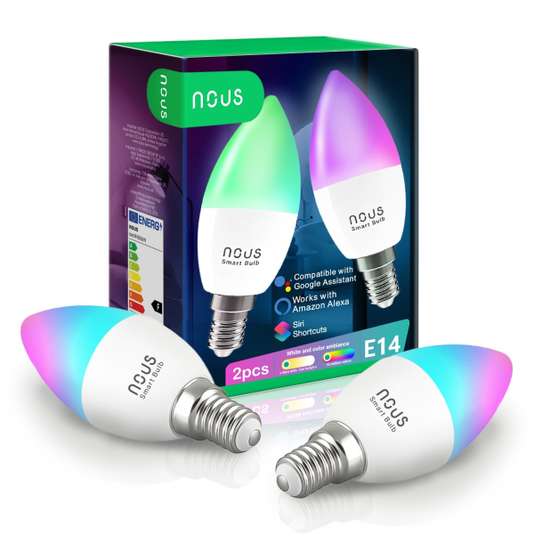 2x chytrá žárovka NOUS P4 WiFi Tuya RGB E14 rozšiřuje možnosti moderního interiérového designu. Velice jednoduše a rychle změníte intenzitu, teplotu a barevný odstín osvětlení ve vašem domově.