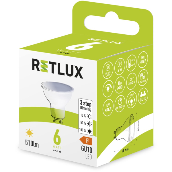 Retlux RLL 447 GU10 LED žárovka stmívatelná DIMM 6W