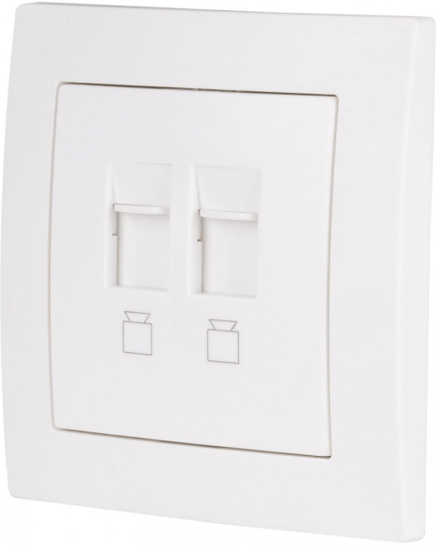 Zásuvka řady AMY LAN + LAN s rámečkem, internetová zásuvka, bílá barva