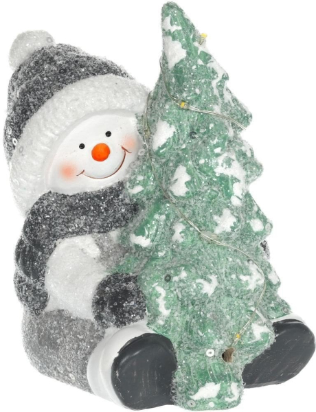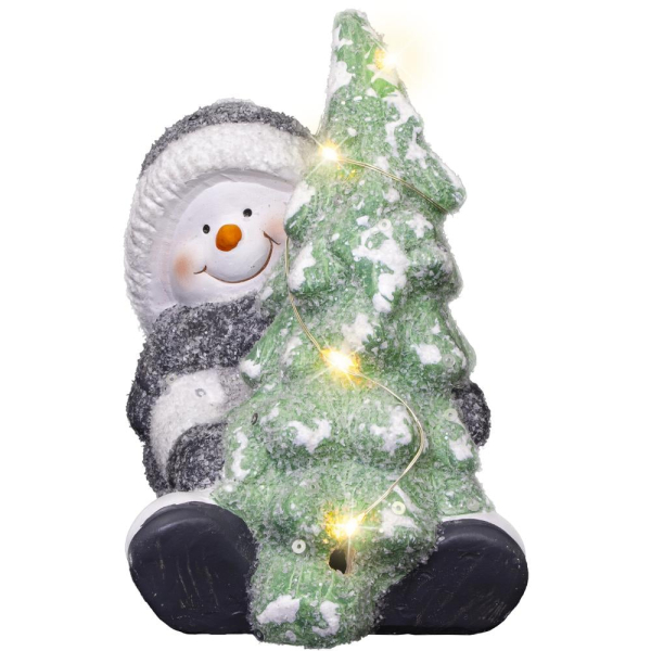 Vánoční dekorace sněhulák se svítícím stromečkem