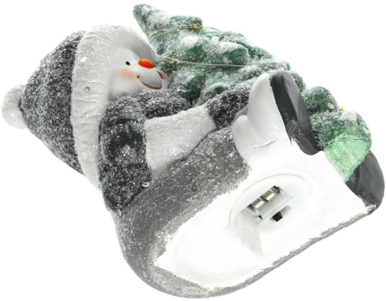 Roztomilý sněhulák s vánočním stromečkem vám pomůže vytvořit si doma jedinečnou vánoční atmosféru. Tato originální dekorace se světelným efektem se perfektně hodí do jakéhokoliv interiéru. Je opatřena ochranným krytím IP20, které zaručuje bezpečné použití uvnitř. Napájení je řešeno bateriemi.