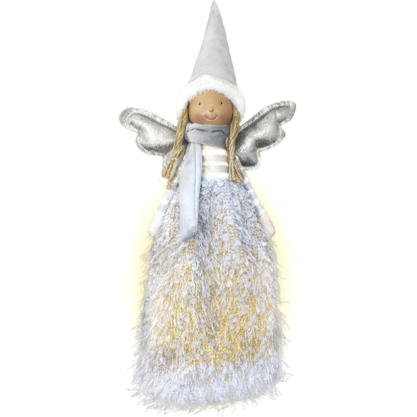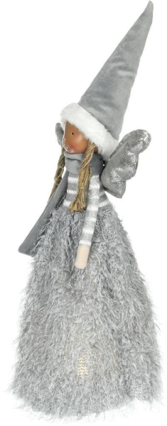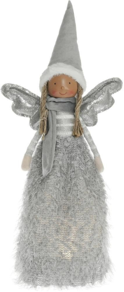 vánoční dekorace • šedý látkový anděl se svítící sukýnkou • 6LED – použitelné uvnitř • provoz na baterie • rozměr: 47cm • 3x AA baterie (nejsou součástí balení)