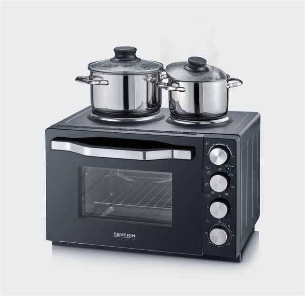 - kompaktní kombinace plně vybavené trouby na pečení se dvěma plotýnkami