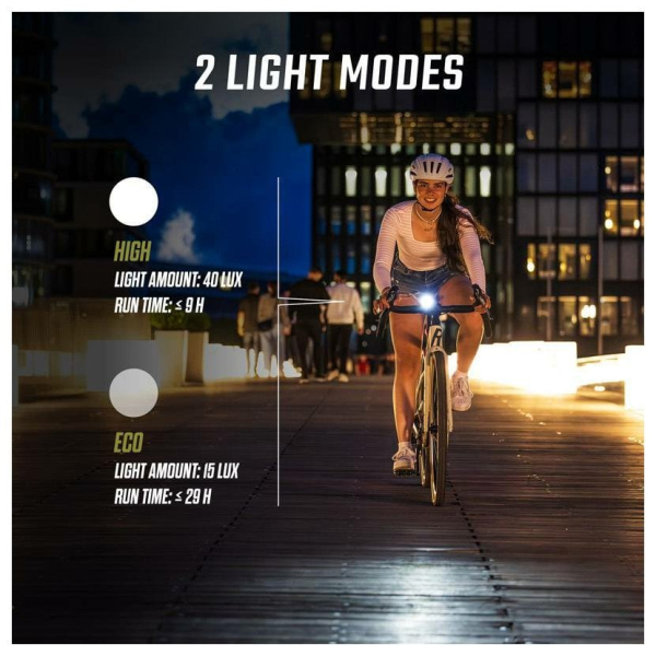 AURA 40 je každodenním společníkem v městském provozu. Světlo s vylepšeným světelným kuželem, dosvitem 50 metrů a výdrží baterie až 9 hodin zajišťuje větší bezpečnost a viditelnost v silničním provozu. Díky připojení USB-C lze světlo nabíjet ještě rychleji a pohodlněji. Světlo AURA 40 se montuje na řídítka bez použití nářadí a jeho ovládání je velmi snadné.