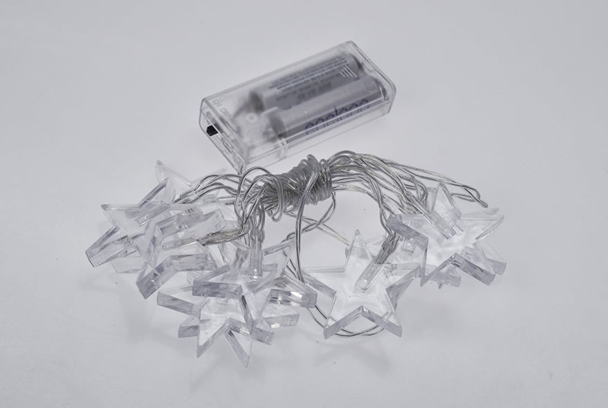 Solight LED vánoční řetěz, hvězdy, 1,5m, 10x LED, 2x AA, bílé světlo