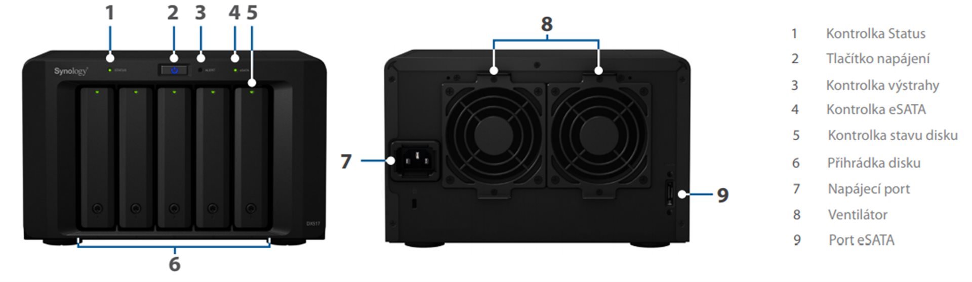 Snadné přidání 5 dalších šachet na disky k zařízení Synology DiskStation1. Zařízení DX517 podporuje 2,5” i 3,5” disky SATA a představuje tak flexibilní řešení podporující průběžné rozšiřování svazku nebo sloužící jako cíl místní zálohy.